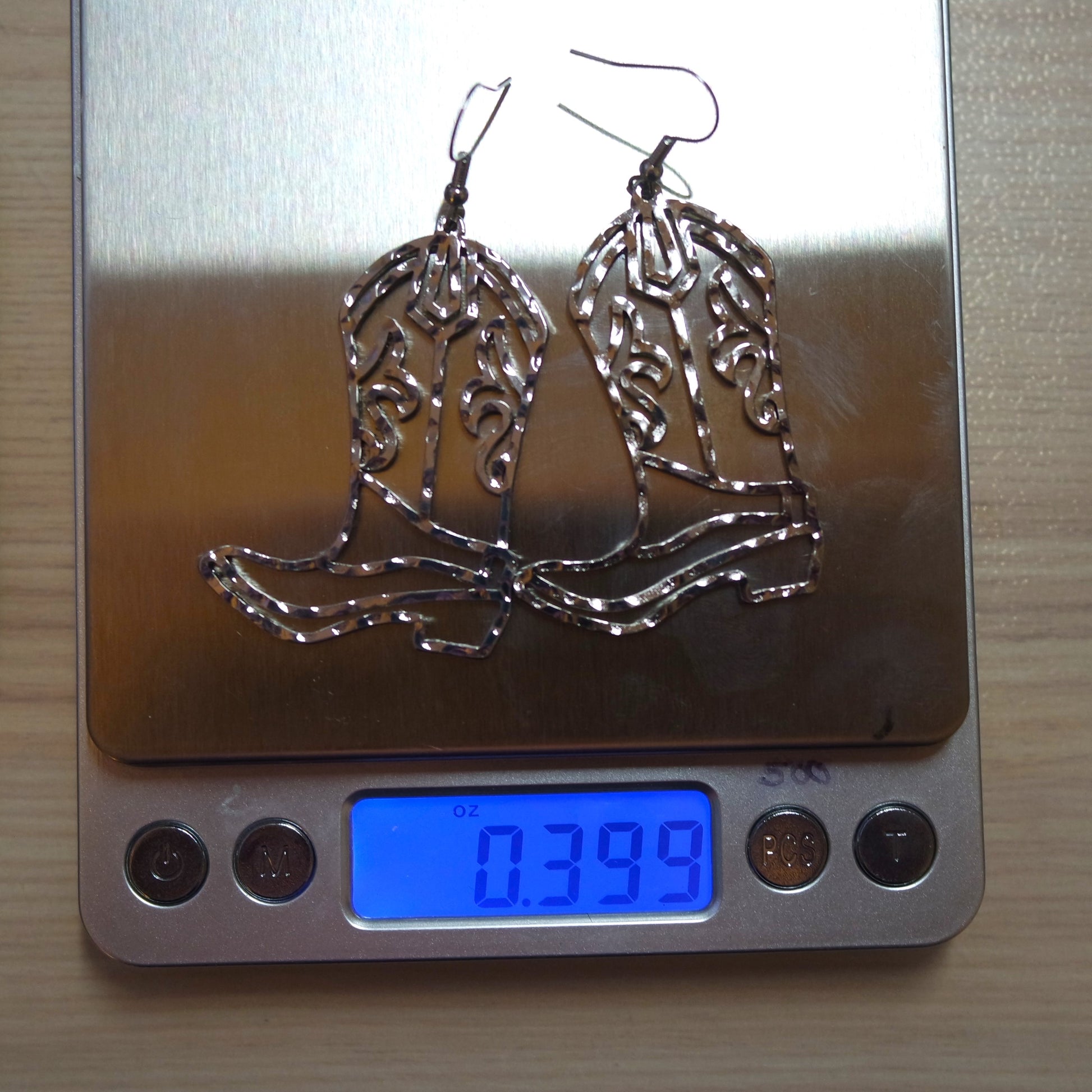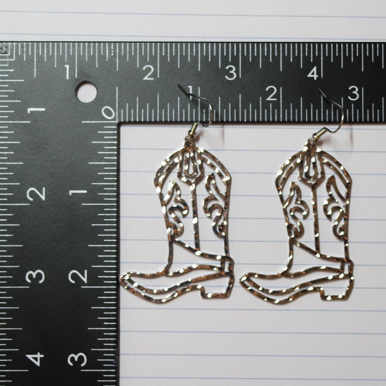 Cowboy Boot Textured Metal Cutout Design Dangle Earrings