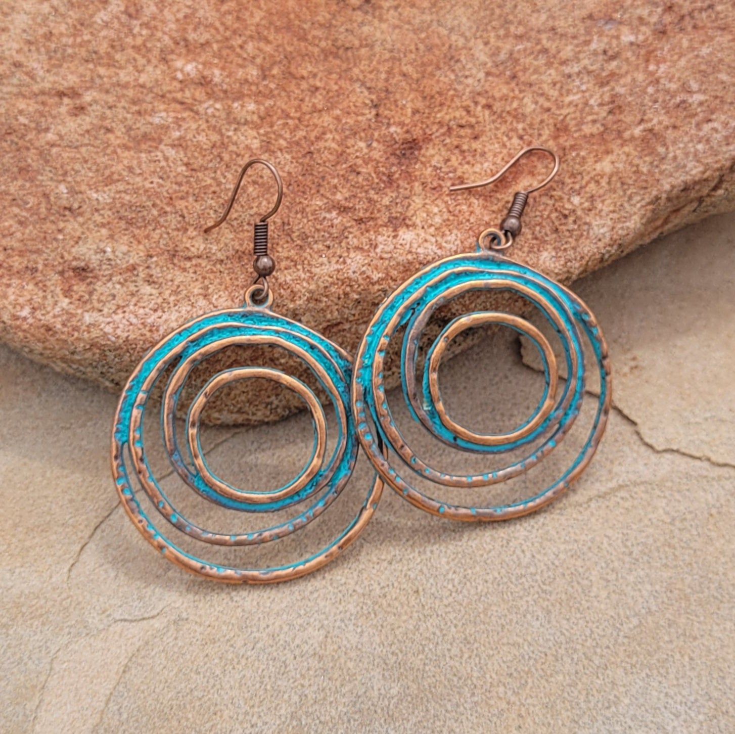Moroccan Bohemian Antique Finish Abstract Rings Dangle Fishhook Earrings